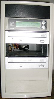 刻录机的数目可以根据需要来装。它的专业名称也说一拖几,“一”是指机头,这个“几”,就是说几个刻录机。比如说一拖五就是一这个机箱可以装一个机头,五台刻录机。普通机箱有一拖五,一拖七和一拖九的。每个DVD刻录机都在4百元左右。不过刻录机的数目可根据需要来装,比如,我买的是一拖五的机箱(一拖五的机箱是最小的),可以装五台刻录机,可是我就让他们给装了两台刻录机。我自己在家用,够用了。
