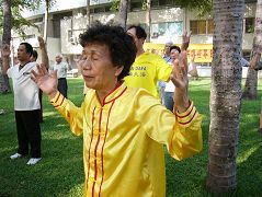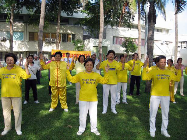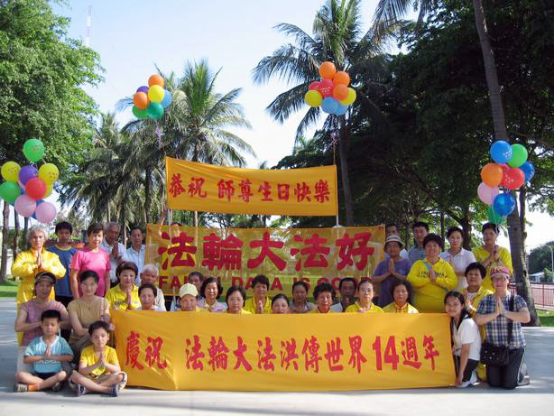 在这个特别的日子,台东法轮功学员用五套功法呈现法轮大法的美好;用鼓声传递法轮大法的神威;用歌声颂赞法轮大法的神奇;并用最诚挚的心感谢师父慈悲救度之恩。