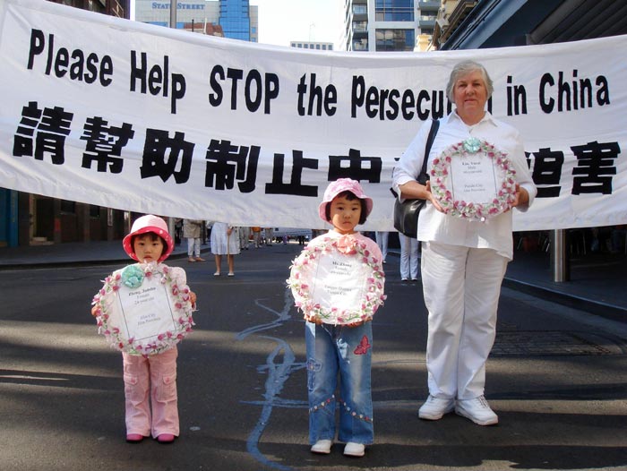 ![]() 今年4月刚从大陆来到澳洲的法轮功学员王存英,参加了游行,并呼吁帮助营救,因坚持修炼法轮功被非法关押了近7年,至今不知生死的儿子李良。 |
