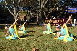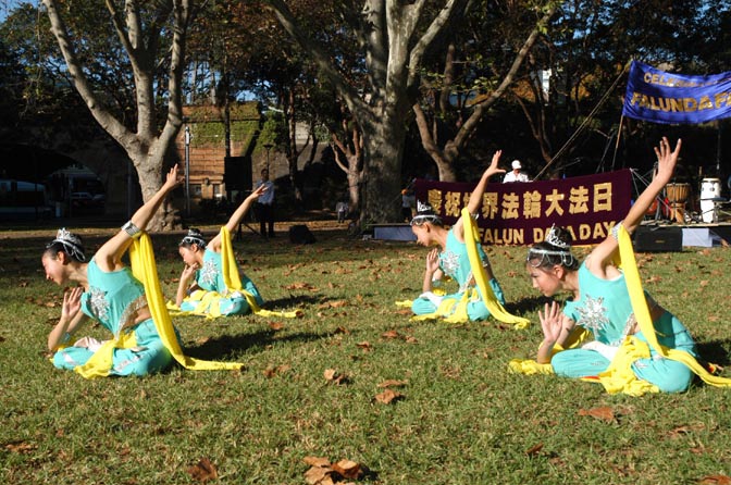 游行结束之后,法轮功学员在位于中国城旁的白茉公园(Belmore Park),演示功法,并表演了合唱、歌舞等节目,让更多的民众了解法轮大法的美好,及一起庆祝世界法轮大法日。