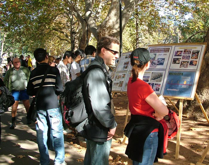 ![]() 展示法轮大法洪传世界各地 | ![]() 在庆祝法轮大法洪传世界的同时,学员们亦呼吁各界帮助制止中共迫害法轮功。 |