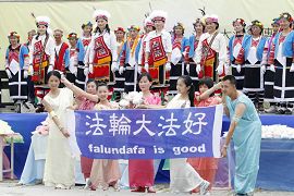 主办单位精心安排了许多的表演节目,腰鼓队是法轮功学员近期特有的表演,他们的雄姿和正念震撼全世界;神韵舞团的古典舞蹈呈现出中华文化的精湛优雅,舞者把在大法的美好,透过舞姿传达给现场的观众们。