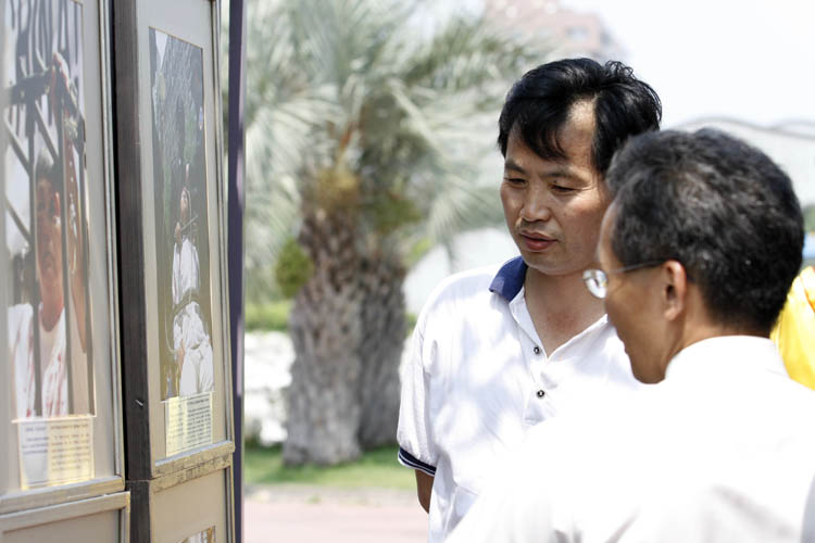 ![]() 新竹监狱辛秘书(左)在世界大法日特来现场祝贺 |