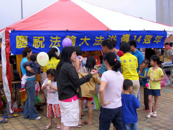 法轮功的展位前人潮络绎不绝,多数是来支持正义,征签反迫害的民众,更多的是大手牵小手,齐声反迫害,这无疑是最好的身教,大家共同渡过了一个不一样的母亲节。