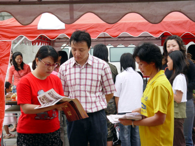 对比大陆对法轮功的抹黑与迫害,身在金门的大陆新娘真幸福,可以一睹大法洪传世界的盛况、了解法轮功的真相,试想还有比这更有意义的母亲节吗?