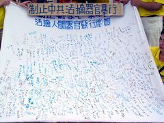 ![]() 民众看到展位前的《见证》真相资料,专注的一边翻阅一边讨论 | ![]() 一个上午征签布条便签满了密密麻麻的名字 |