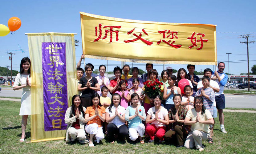 德州五月的天气已是非常的炎热,八旬老年学员绍先生一直在直射的阳光下炼功。他是93年,当还在大陆的时候,从体育报上看到关于法轮功的图片报道,于是剪下来,并照着炼;从此与大法结缘。95年有缘得到大法书籍,才知道大法是修炼,而不是普通的气功锻炼。