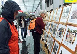 展出刚开始的时候,一些华人总是从旁边匆匆走过。慢慢的,他们开始在展板旁边驻足观看,而且观看时间也越来越长。有些华人看过后向学员索要·九·评*资料。他们开始与学员们交谈并表示对法轮功的支持,一些人还鼓励身旁的同伴也来观看。同时,越来越多的拥有其它信仰的人士也前来观看摄影展,他们希望更多的了解法轮功,也鼓励和支持学员们营救在中国受迫害的法轮功儿童、退!党!以及近期的强烈谴责和抗议中共摘取法轮功学员器官出售的邪恶行为。更多的人感谢学员给他们带来关于法轮功的信息。