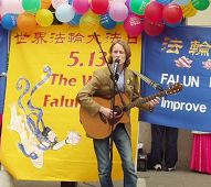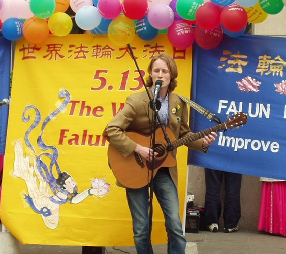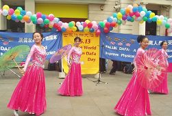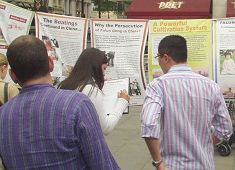 来自曼彻斯特的法轮功学员琼(Joan)在发传单的时候遇到一位英国男士,和琼谈了很长时间。之后,这位男士对琼说,他觉得很多有智慧的人将会学炼法轮功。