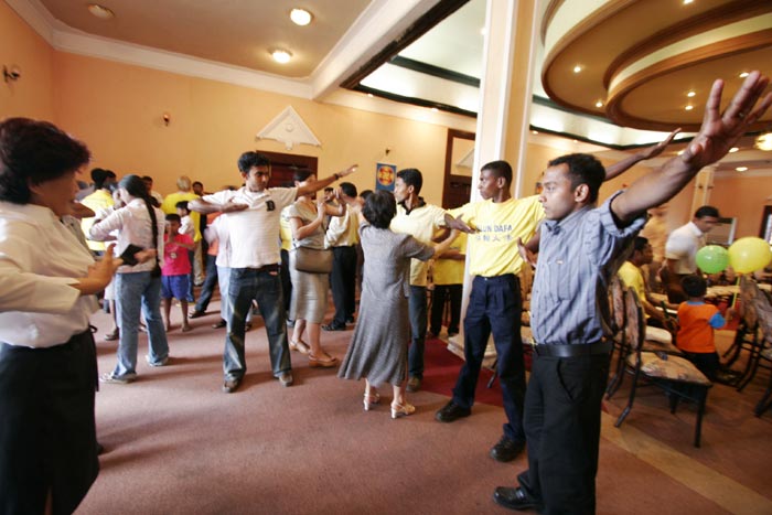本次交流会的一个特色是在進行交流之前,由法轮功学员先表演功法,现场来宾在观赏法轮功学员表演后,纷纷表示愿意学炼法轮功。随即将来宾分成数组,由学员指导炼功。斯里兰卡民风纯朴,民众心地善良,经过学员的指导,他们很快就学会五套功法,并有民众当场购买法轮功书籍,表示要修炼法轮功。