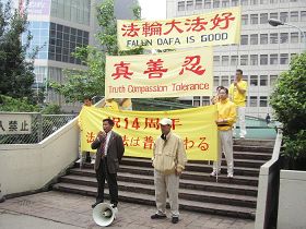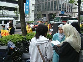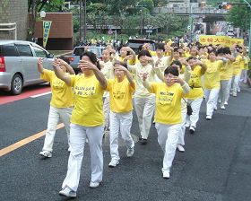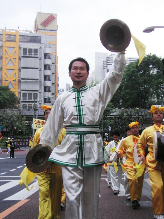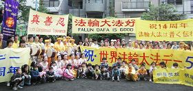 5月14日,日本法轮功学员汇集在东京涩谷,集会游行共同庆祝世界法轮大法日。欢庆锣鼓、精美唐装、仙女装表演和法轮大法功法展示等,吸引行人纷纷驻足观看,不少游人还用摄像机、照像机拍下法轮大法弟子展现的美好。