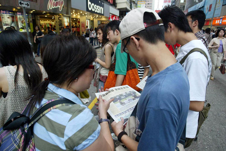 ![]() 一家大小齐来了解真相。 | ![]() 学员向市民讲真相。 |