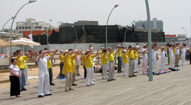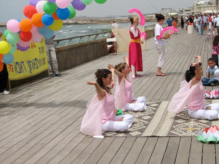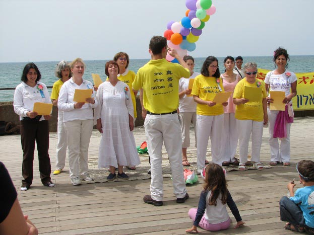 【明慧网2006年5月17日】2006年5月13日,数十名以色列法轮功学员聚集特拉维夫共同庆祝世界法轮大法日,不少新学员也参加了此次活动。活动从当地的唐人街开始,在那里法轮功学员不仅演示了功法、派发了专门为法轮大法日准备的传单,同时还表演了以色列学员编排的莲花舞,合唱团还用中、英文演唱了歌曲。