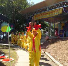 九号电视台记者闻讯赶来,拍摄了“法轮大法好”腰鼓表演及其它节目。庆祝活动在一片喜庆祥和的气氛中结束。