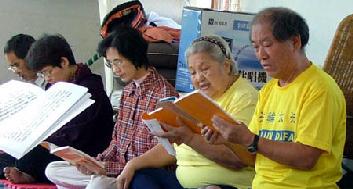 ![]() 2005和大家一起学法相互促进,是刘映谷(右一)生活中最愉快的时刻 |