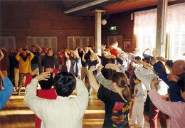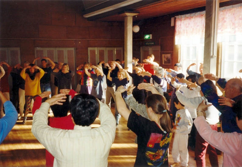 有的西方学员一出现消业情况,就不来了。为了避免这种情况发生,每期学习班都有老学员参加,每听完一讲都要讨论交流。当时,还曾组织西人学员到中国大连,与中国学员一起学习交流,体验中国学员是如何修炼的。