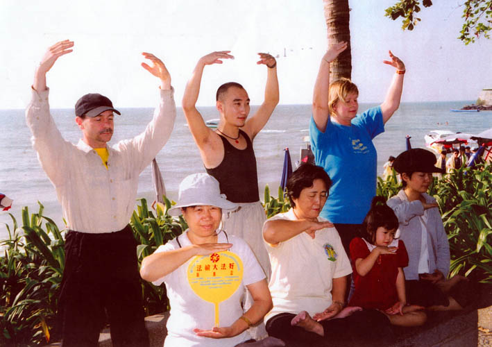 从中国回来后,她随着丈夫到泰国工作,她经常在公园里炼功,为过往的行人发真相资料。她说:“因为我住在那里,就有责任让那里的人们知道真相。”