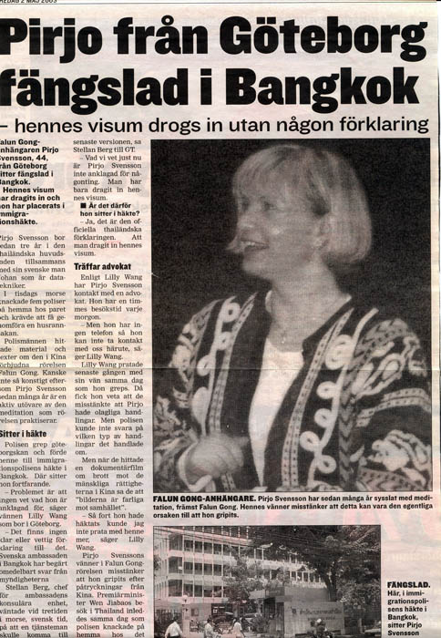 后来,瑞典大使将Pirjo接回瑞典后,瑞典的报社和电视台采访了她。她在瑞典的一家电视台向全瑞典的人民揭露了中共政权的卑鄙伎俩。