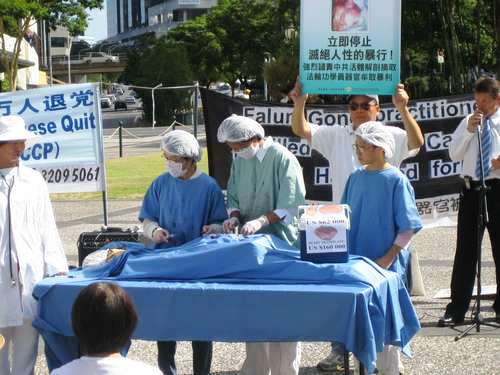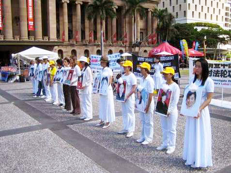 法轮功学员们演示了中共劳教所、集中营、医院活体摘除法轮功学员器官的惨烈场面,现场人们义愤填膺,很多人当场流下了热泪。各侨界团体领袖纷纷发言严厉谴责中共的暴行。身着白衣的学员手执被害同修的遗照花圈,在歌曲“同修啊,让我再送你一程”的歌声中沉痛哀悼那些在迫害中被夺去生命的大陆法轮功学员。人们用各种形式的文艺表演揭露着这场长达七年的迫害,寄托着哀思……