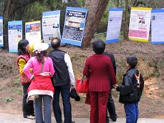 ![]() 展示于半山腰的展板吸引了大批游客驻足观看 |