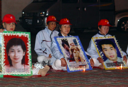![]() 追悼会现场,与会者同为遇难的法轮功学员默哀致敬。 |