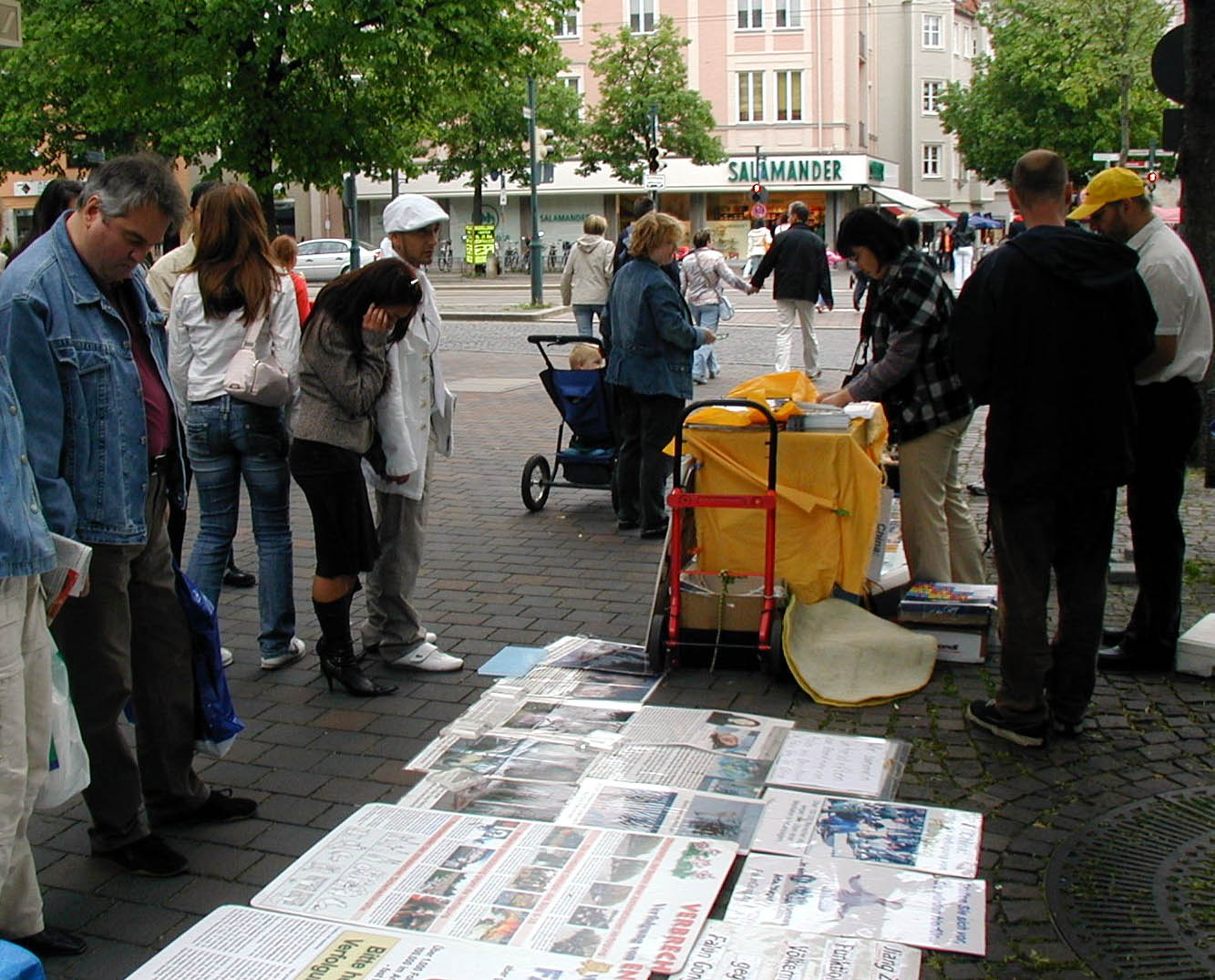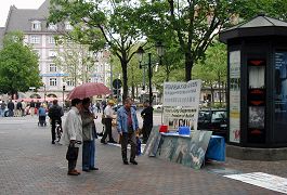 横幅“中共活体摘取法轮功学员器官”让许多行色匆匆的路人放慢了脚步,他们仔细观看了“法轮大法洪传世界”、“中共迫害法轮功学员的罪行”、“中共活体摘取并出售法轮功学员器官”等展板,有些人和学员進行了交谈,不少人签下自己的名字,呼吁制止中共的暴行。