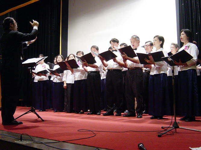 近来学员体悟到修炼内涵的博大精深,应该运用自己的专长和能力证实大法的美好,因此,在工作与课业之余,不分男女老少,法轮功学员自发组成舞蹈团、腰鼓队、合唱团,学员们自费购买乐器、表演服装、制作道具,定期练习,别看小朋友年纪小,她们都能忍受繁复练舞和拉筋的痛苦;别看阿妈学员年纪大,不管寒暑晴雨、只要哪里需要演出哪里就有他们的身影。
