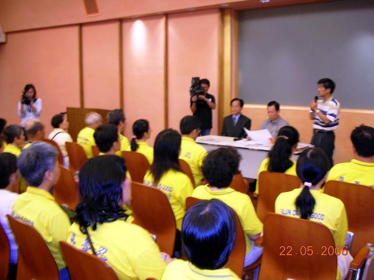 主持人陈金麟议员在听取学员发言后表示,确实曾听说民众去中国置换器官后短期内死亡,如今了解法轮功学员在中国被活体摘取器官的情事,两相对照的确有吻合之处。三位议员在了解详情后均签署表达支持该项提案,并以吴福田议员为提案人,发动县内议员共同联署该项提案。