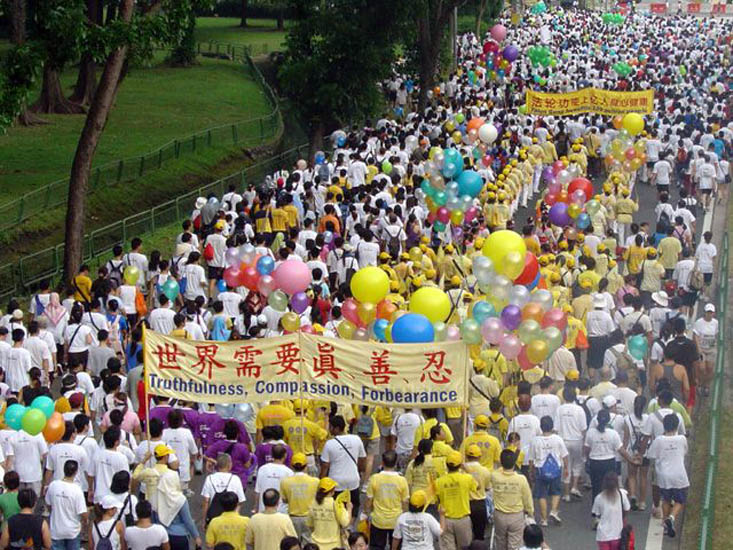 ![]() 法轮功学员参加万人大竞走 | ![]() “世界需要真善忍”横幅格外醒目 |