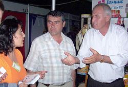 ![]() 展销会上学员们派发真相材料的身影随处可见 | ![]() 参展人员全神贯注的倾听关于法轮功真相的介绍 |