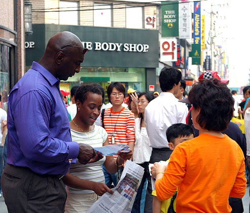 韩国人称五月为季节女王,因为五月的韩国风和日丽,鲜花烂漫;也称五月为家庭月,因为五月的韩国有儿童节、父母节、教师节、纪念佛的诞辰日及伴随这些节日的公休日,人们会走出家门拜访父母、老师,敬拜神佛;也常会看见扶老携幼一家人沐浴在春天的温暖里的风景。这体现了韩国人保持的敬老爱幼、尊师惜友、敬畏神佛的传统美德。在这样的五月里,世界法轮大法日更是备受瞩目。