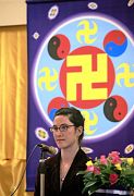 一位从中国大陆来的学员April讲述了她如何从“等师正法”到“助师正法”,在过程中她走过了彷徨和疑惑的时期,成为正念坚定的正法时期大法弟子。被邪恶抓走的时候,给警察讲真相正念闯出,并在亲人被抓被劳教的时候,给单位领导讲真相,积极营救。随着正念的加强和学法的深入,她开始利用自己的工作机会讲真相。她将真善忍法理溶入讲课中和为人处事中,获得学生、同事和校长的信任。在生活中,无论是去浴池洗澡、书店买书、市场买鞋、乘坐出租车,都不忘随手放一张光盘、真相小册子或自己录制的真相磁带。每次坐出租车,都不忘跟司机在聊天中讲清法轮功真相。
