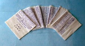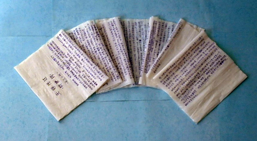 这篇写在卫生纸上的证实大法的辩护词、以及揭露邪恶迫害的文稿和证据,还有同修在狱中坚持学法背写的师父的经文,来的很不容易。从看守所到劳教所被长期非法关押期间,同修日夜悉心保护。历经多次突袭大搜监、野蛮搜身、强行翻包、撕拆被褥等非法检查,在师尊的慈悲呵护、加持和帮助下,才神奇的、完好的保护了下来。并且从看守所到劳教所、再到面世,几经周折,突破重重封锁,终于辗转传出。(2006年3月)