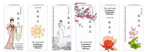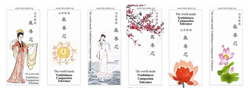 洪法卡片、“法轮大法好”及“世界法轮大法日”书签