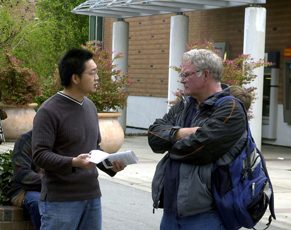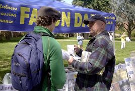 在校园的自由言论区内,醒目的法轮大法展台周围摆满真相展板。从法轮大法洪传世界,到法轮功学员在中国大陆7年来所遭受的各种酷刑迫害,到最近刚被揭露出的集中营活体摘取法轮功学员器官并焚尸灭迹的惨案。许多师生驻足观看,他们表示震惊,不敢相信。