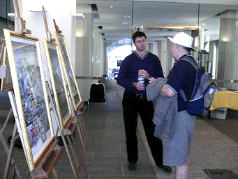 ![]() 澳洲参议员Ruth Webber在画展开幕式上谴责中共暴行 | ![]() 部份参展作品 |