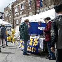 ![]() 在丁香节上向人们介绍法轮功 |