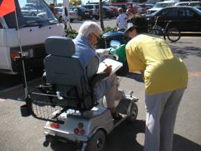 坐着轮椅的老者,很仔细的看了摄影展真相资料和听了学员的讲解后愤慨的说,它们(中共)是没有人性的疯子!