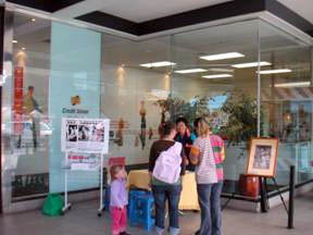 2006年4月28日,在Theme的摄影展,由于刮风下雨,店家热心提供大厅的场地,做讲真相、征签的活动。过往的人们,只要听到在中国发生的惨烈事件,都说,我支持你们尽早制止这场迫害!