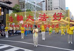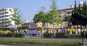 下午三点钟,一部份学员还来到中领馆前发正念并抗议中共对法轮功的迫害,学员们沿着中领馆对面的路边整齐的排开,发正念,针对中共活体摘除法轮功学员器官牟取暴利的罪行向中领馆人员用中文和日文宣读公告,呼吁彻底调查中国所有的劳教所、医院等有关部门,制止对法轮功学员持续七年惨绝人寰的迫害。
