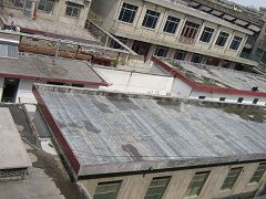 4、下面是非法关押大法弟子的两排平房。北边的平房与厨房相连的白色墙上布满了铁丝网,平房西边的厕所与平房、墙连接的地方也布满了铁丝网。门牌上写的是几几宿舍,是迫害大法弟子的地方。