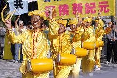 真相图片9:纽约法拉盛新年游行 法轮功军乐队备受瞩目