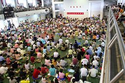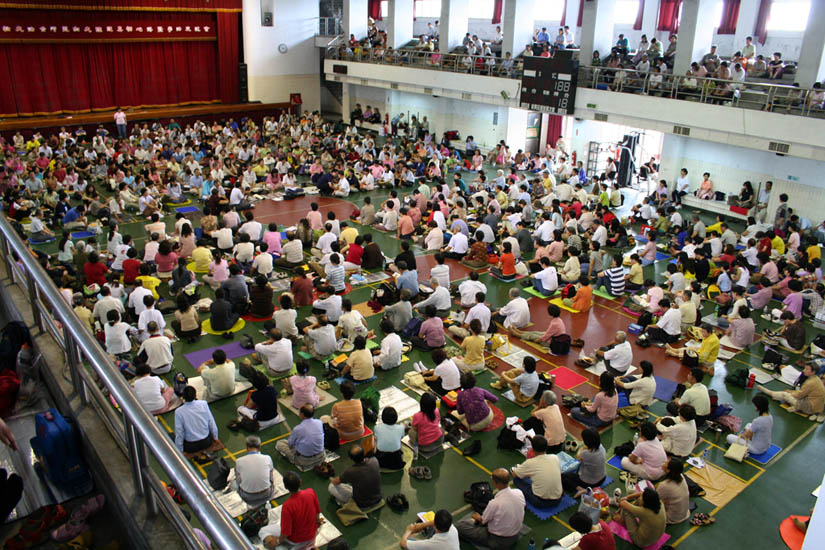 学员看了看他,有感而发:“我看你长的方头大耳的,很庄严,说不定前世你也是修炼人。”对方回答“谢谢。”学员说:“真可惜你生在一个无神论的国家,都忘记修炼了。”对方似乎受到一阵触动,后来与同行的几个人讨论后,把欢迎的旗子收起来,离开了。