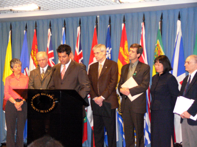 来自三个政党的另外六名国会议员是莫莱斯•维莱考特(Maurice Vellacott)、布鲁斯•萨通(Bruce Stanton)、博瑞•瑞兹纽科斯基(Borys Wrzesnewskyj)、比尔•西克绥(Bill Siksay)、维尼•马斯通(Wayne Marston)以及德耐茜•塞瓦(Denise Savoie)。CTV、CBC电视台等加拿大多家主流媒体进行了现场报道。