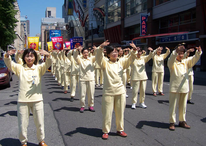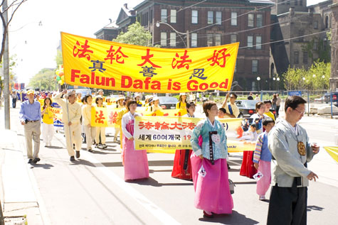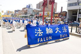 5月,是法轮大法月,5月27日,在多伦多市中心,两千多名法轮功学员举行了盛大的游行,为这里居民忙碌的生活带来了祥和、欣喜和思考。