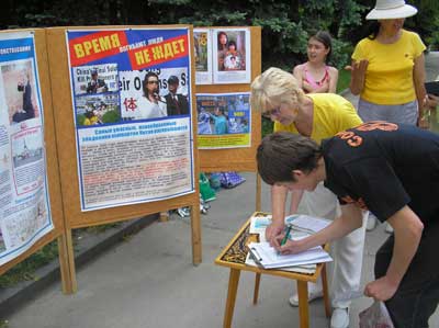 ![]() 被震惊的人们向法轮功学员了解真相 | ![]() 人们纷纷签名支持国际调查,制止犯罪 |
