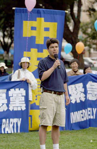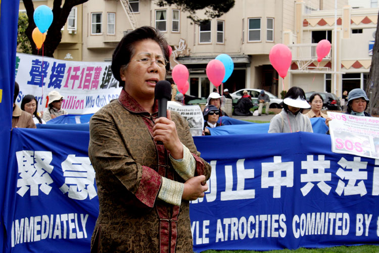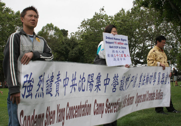 集会主持人、北加州退!党!服务中心代表马有志表示,自《·九·评*共产党》于2004年11月发表以来,在大.纪.元;退!党!网站上公开声明退出中共组织的人数已逾一千一百万,越来越多的人认清中共的邪恶本质,也让人们彻底抛弃对中共的幻想。尤其是最近揭露的中共活体摘取法轮功学员器官的暴行,人们认识到,中共的邪恶已经超出历史上任何极权政府所干的。而且中共还用欺骗手段掩盖他们的暴行。