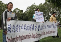 ![]() 呼吁制止中共法西斯暴行 | ![]() 中国城游行吁制止中共迫害 |