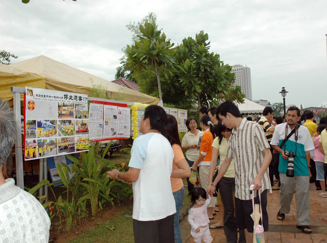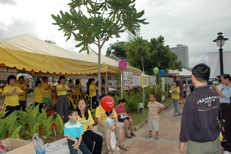 ![]() 法轮大法洪法摊位。 | ![]() 民众了解真相。 |