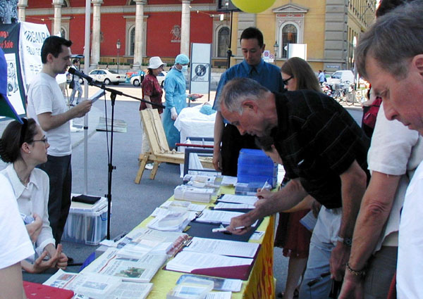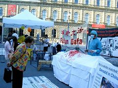 【明慧网2006年6月16日】(明慧记者德祥报道)“这是谋杀,是灾难,这种行为必须被制止。”签名呼吁制止中共迫害法轮功的韦林格先生(Welinger)这样告诉记者,他刚刚看过法轮功真相展板和真人模拟摘取器官的演示。